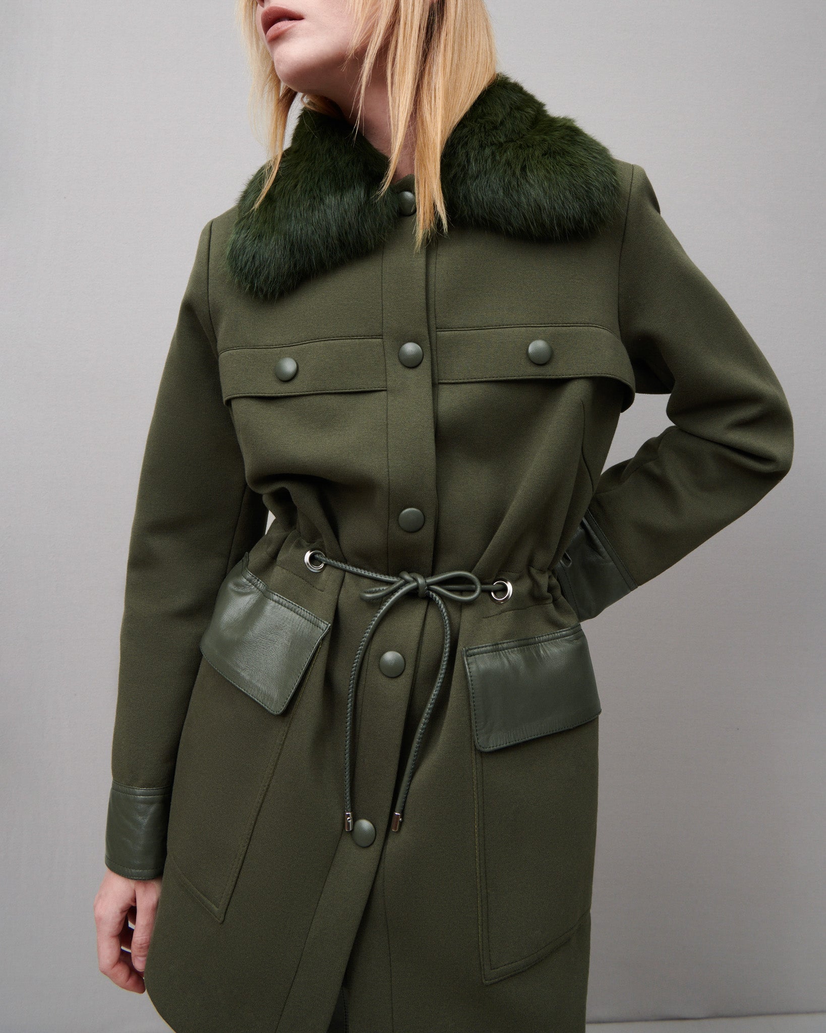 Blazer linho oversized bolsos oliva