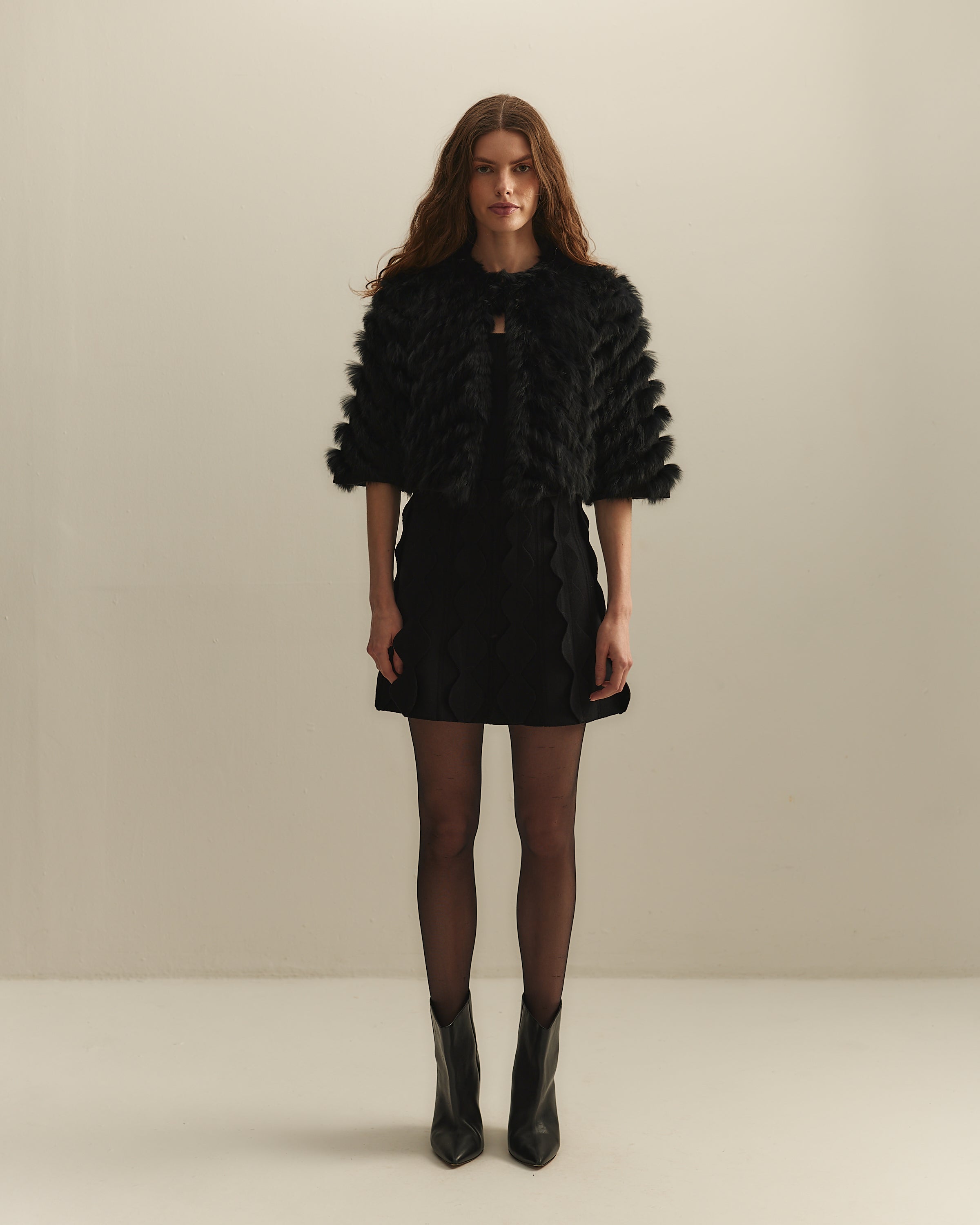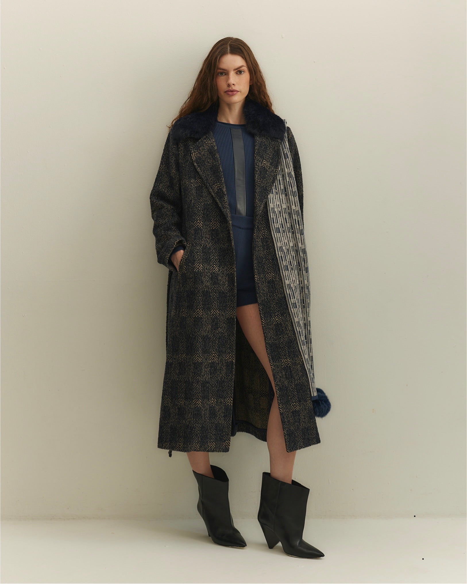 Casaco em renda de tricot zigzag capuz tricolor merlot