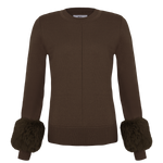 Blusa tricot detalhe rendado punho pele brownie