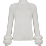 Blusa tricot gola roule punho pele off white
