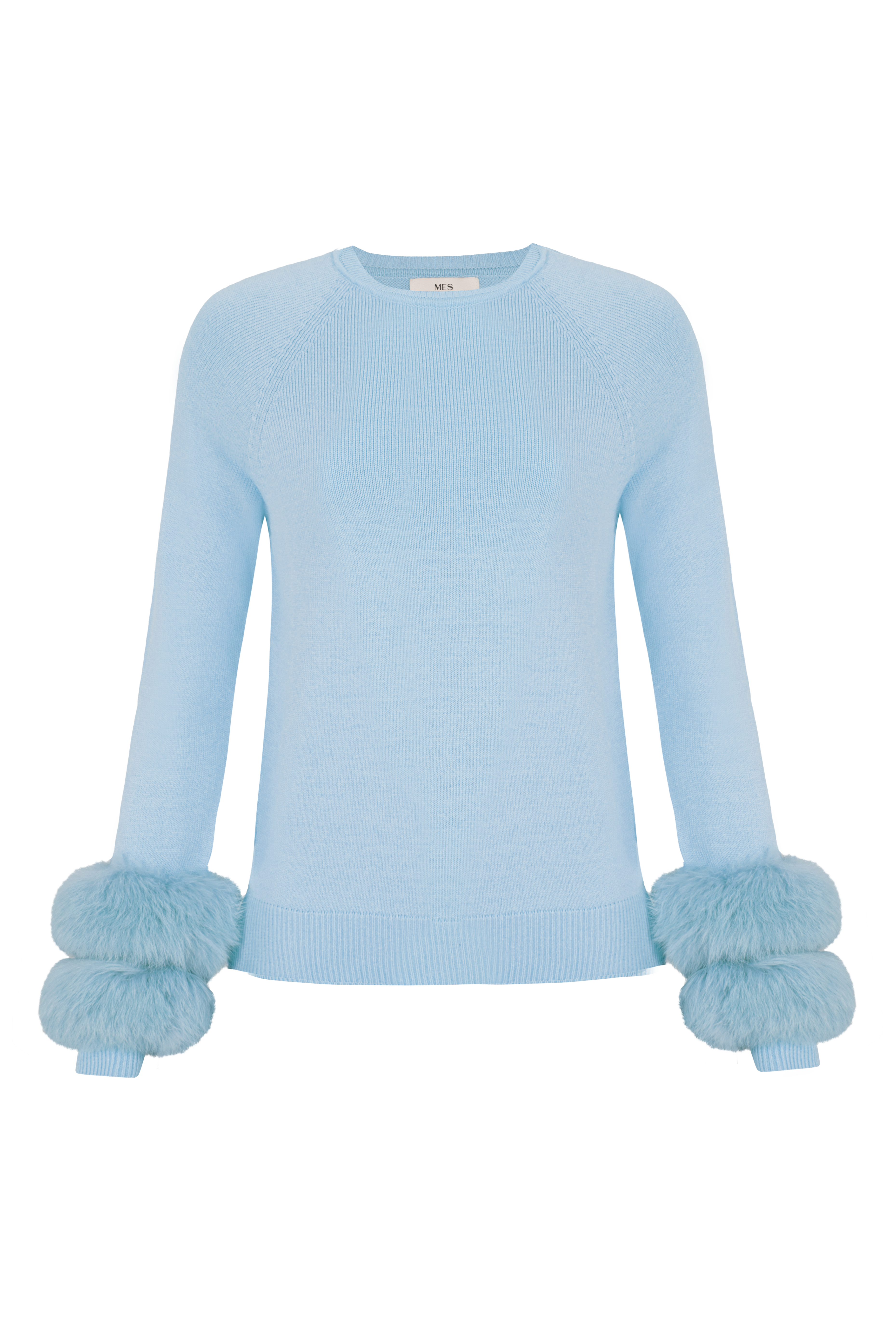 Blusa tricot gola careca punho pele sky