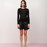 Justa ao corpo e com um toque de ousadia sutil, a blusa em tricot rendado eleva o básico a um novo patamar. A transparência controlada e a textura vazada criam um jogo de sobreposições moderno e sensual, enquanto o fio de viscose confere brilho discreto e toque sedoso. Com mangas longas e modelagem ajustada, é a peça-chave para composições contemporâneas — do look urbano ao mais sofisticado.