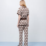 Calça em tricot com padronagem geométrica desenvolvida em jacquard, que alia conforto e impacto visual. Com modelagem reta e cintura média, valoriza a silhueta com leveza e movimento. O caimento estruturado acompanha o corpo sem marcar, enquanto o desenho gráfico em tons terrosos traz sofisticação e originalidade. Ideal para compor conjuntos com o colete coordenado, mas também se destaca sozinha em produções mais criativas e modernas.