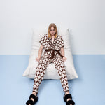 Calça jacquard losangos flor cacau