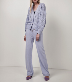 Cardigan tricot ombro/punho pelo lavanda – MES