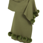 Xale tricot pompom olive