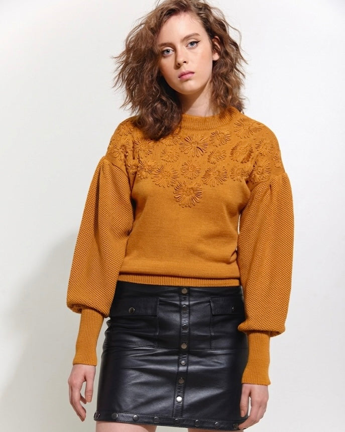 Blusa tricot bordado flor âmbar