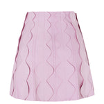 Saia curta confeccionada em tricô com ponto parcial, que alterna áreas de densidade e transparência para criar um desenho único e estruturado. O fio com elastano garante um caimento mais ajustado ao corpo e uma aparência encorpada, valorizando a silhueta com conforto. As esferas aplicadas manualmente ao longo das tramas conferem um efeito tridimensional que enriquece o visual da peça, trazendo dinamismo e sofisticação artesanal. Um modelo versátil e moderno, ideal para compor produções marcantes com toque autoral.