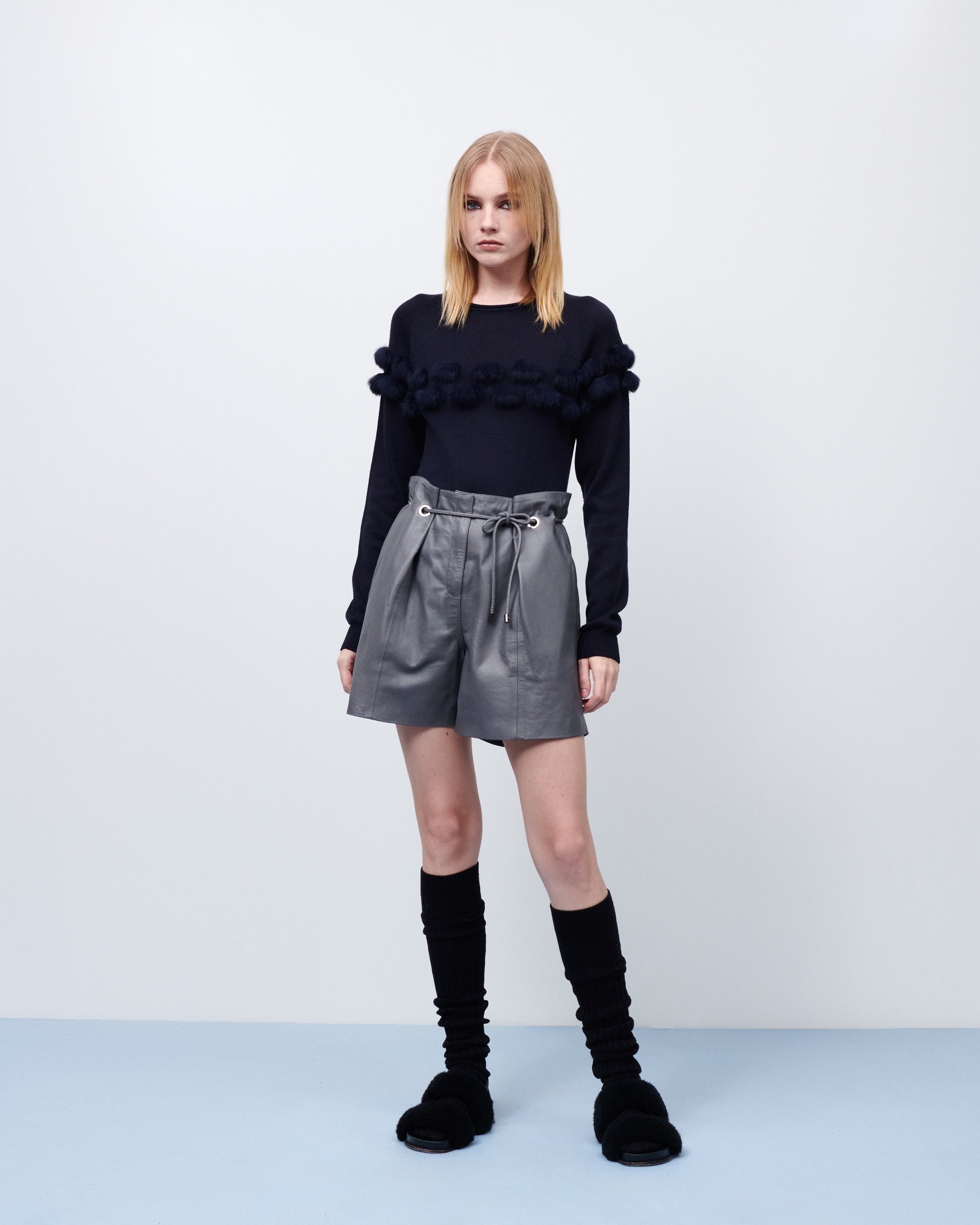 Blusa tricot manga longa fita pele marinho