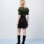 O tricot ganha leveza e ousadia na versão com mangas curtas e aplicação de fita de pele — um bordado artesanal que contorna o busto com textura e movimento, criando um efeito gráfico inesperado. Confeccionado em fio misto de algodão, combina sofisticação e conforto em uma silhueta fácil de usar, perfeita para produções elegantes e descomplicadas. Um clássico MES com espírito jovem e olhar contemporâneo.