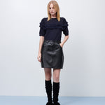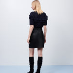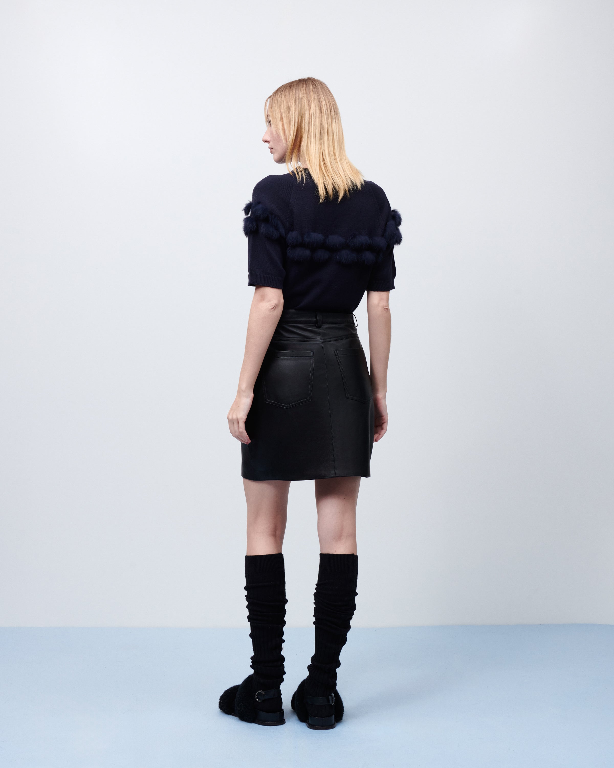 O tricot ganha leveza e ousadia na versão com mangas curtas e aplicação de fita de pele — um bordado artesanal que contorna o busto com textura e movimento, criando um efeito gráfico inesperado. Confeccionado em fio misto de algodão, combina sofisticação e conforto em uma silhueta fácil de usar, perfeita para produções elegantes e descomplicadas. Um clássico MES com espírito jovem e olhar contemporâneo.