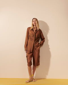 Bermuda em tecido rami com toque natural e caimento estruturado que traz sofisticação ao visual utilitário. O design conta com bolsos cargo laterais que adicionam funcionalidade e estilo, enquanto a cintura alta alonga a silhueta e garante melhor ajuste ao corpo. Uma peça moderna e versátil, perfeita para produções elegantes com personalidade.
