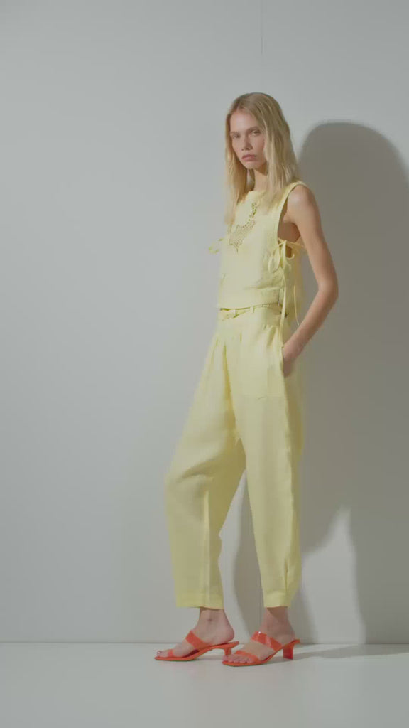 Calça linho barrel com cinto butter