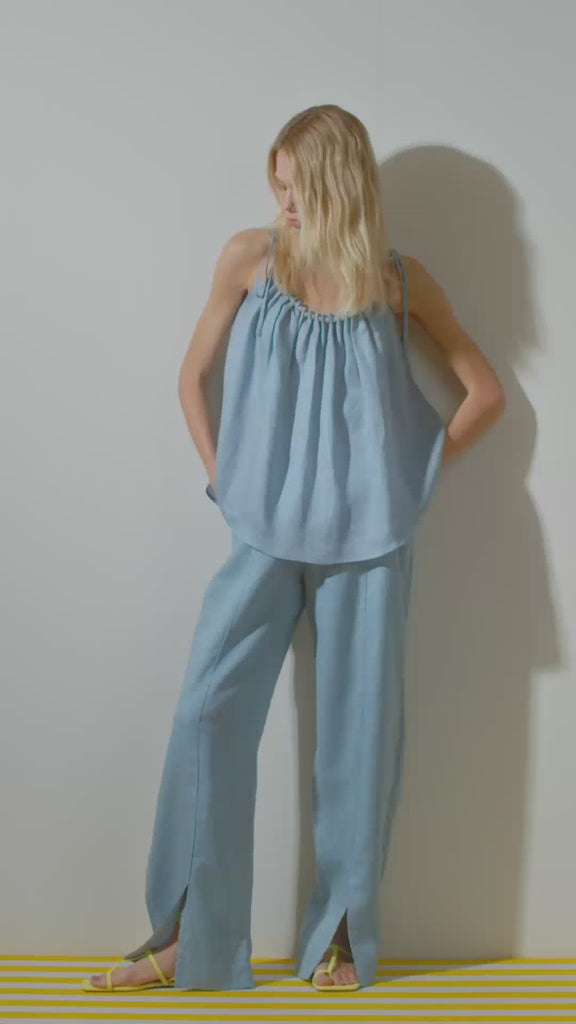 A calça Linho Detalhe Vivo Lateral Fenda Frente combina estrutura e leveza em um modelo que traduz a elegância natural do linho. Com modelagem ampla e fenda frontal, a peça apresenta um caimento fluido que alonga a silhueta, enquanto o detalhe de vivo nas laterais adiciona sofisticação e movimento. O tom de azul suave expressa a serenidade e o frescor da coleção Jardin de Nuit, criando um equilíbrio entre o essencial e o contemporâneo.