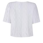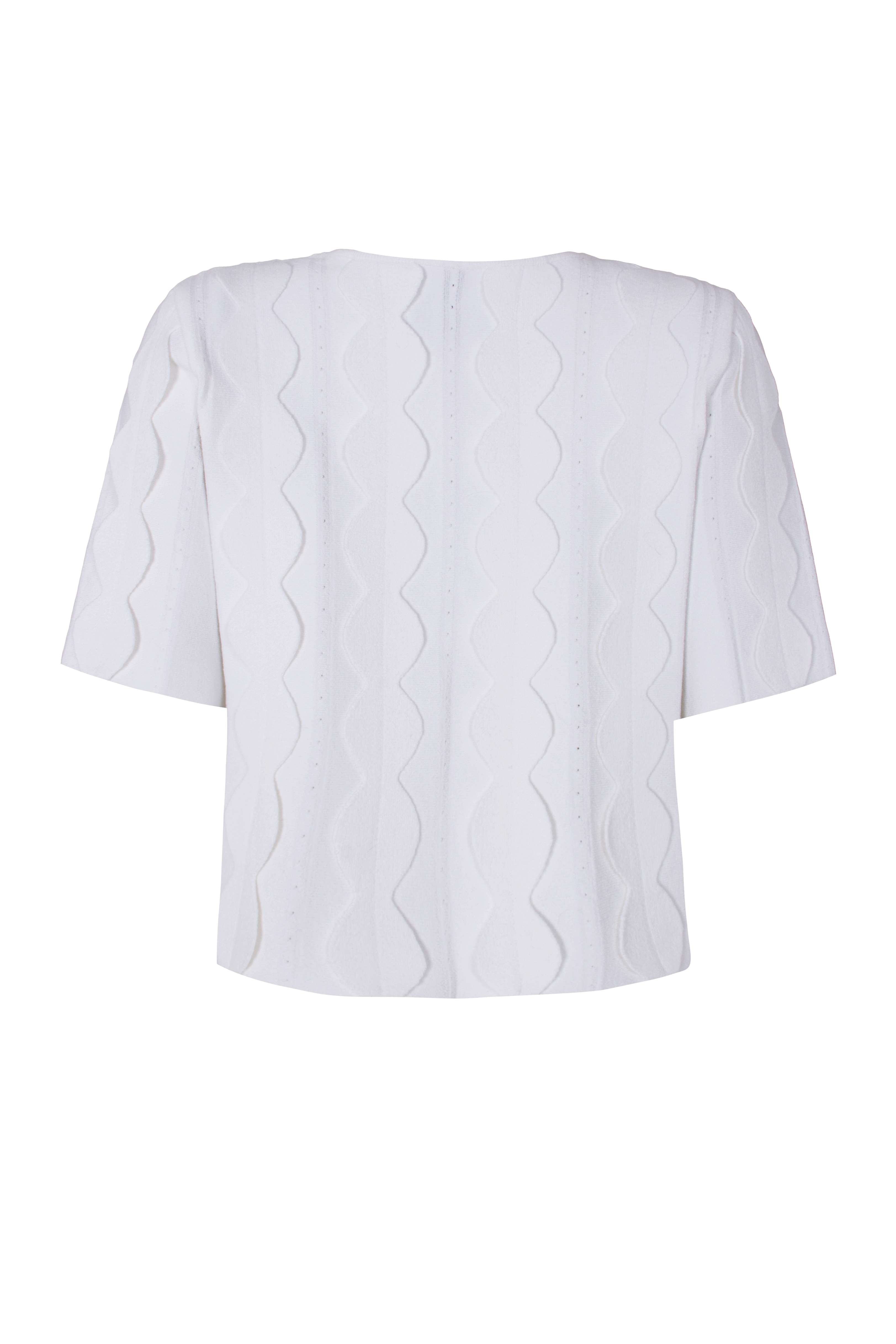Casaqueto em tricot parcial estruturado com shape reto e comprimento cropped. A peça ganha destaque pela aplicação de esferas em relevo, que percorrem toda a superfície em um desenho orgânico e contínuo — criando um efeito visual 3D marcante e sofisticado. A textura escultural desse trabalho artesanal imprime movimento e profundidade ao look, sem abrir mão da leveza.