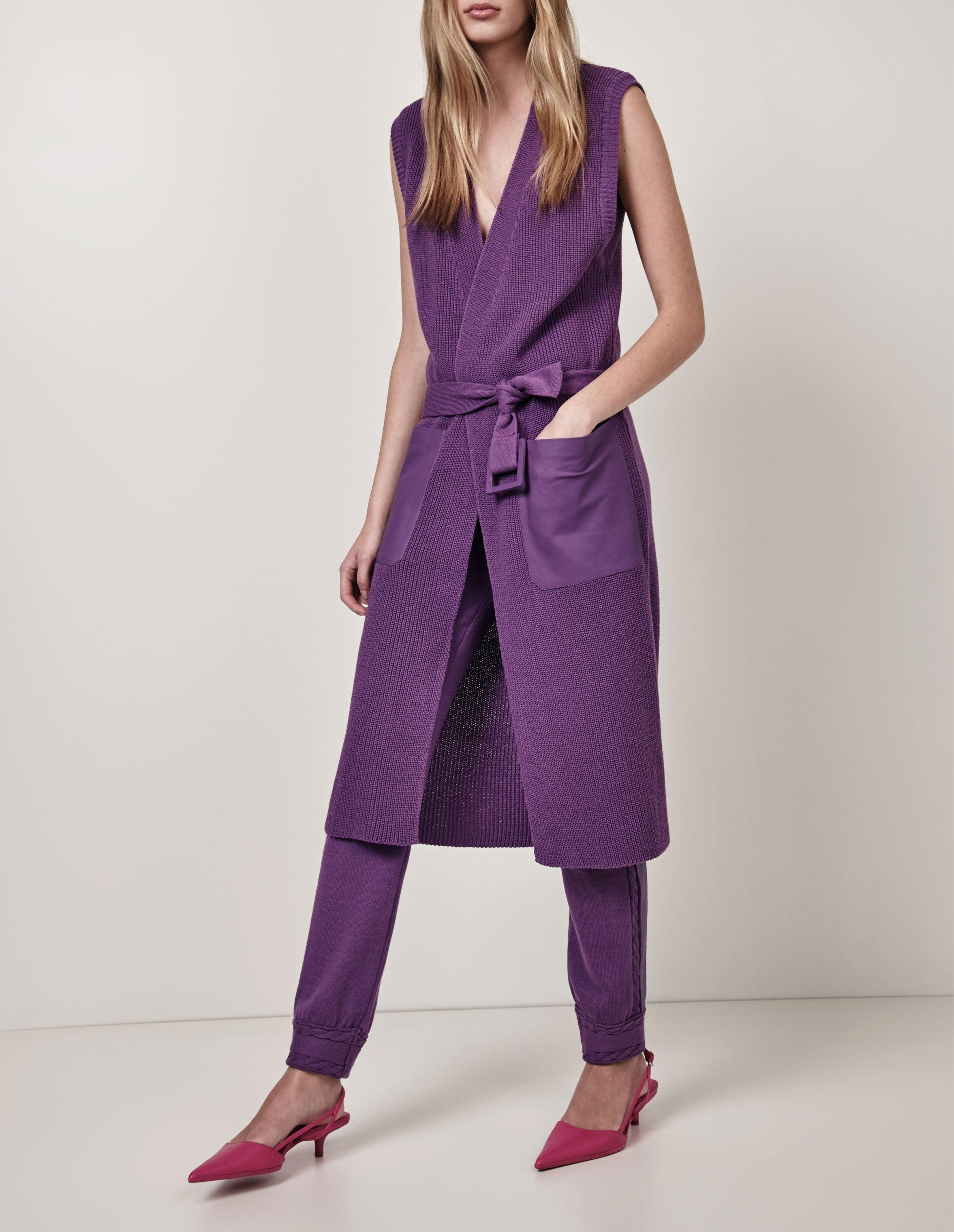 Este cardigan em tricot longo é puro charme. O detalhe do bolso em couro dá um toque de sofisticação ao visual. Perfeito para qualquer estação, esse tricot é versátil, moderno e ao mesmo tempo clássico.